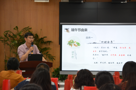 2024年6月5日下午,亚青村三楼报告厅散发出阵阵艾草的清香。在端午节即将到来之际,公司工会主席彭亚辉、公司党委书记王飞、经理李学明、党委副书记刘哲、副经理缪文俊以及多个部门单位50余名老师欢聚一堂,共同举办“浓情端午,为艾而行”中医药文化特色体验活动。