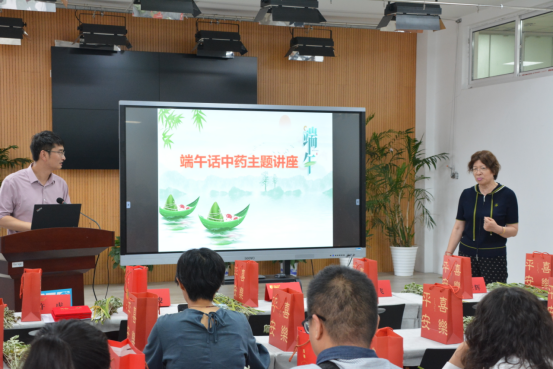 院工会主席刘哲热情洋溢地介绍活动背景,引用《诗经》等典籍中的名句对艾草进行了介绍。活动邀请江苏卫生健康职业公司、中医药专家许虎老师作主题为《端午话中药》讲座。他从节气、习俗、药用等方面详细讲解端午的由来,讲解生艾叶、藿香、紫苏叶、佩兰、石菖蒲等中药材的用途和中药文化故事,风趣幽默间了解到中医药的博大精深。在漫谈交流中药文化环节,何冰芳教授和王永禄教授等对生活和科研中遇到的中医药问题与嘉宾进行深入探讨。