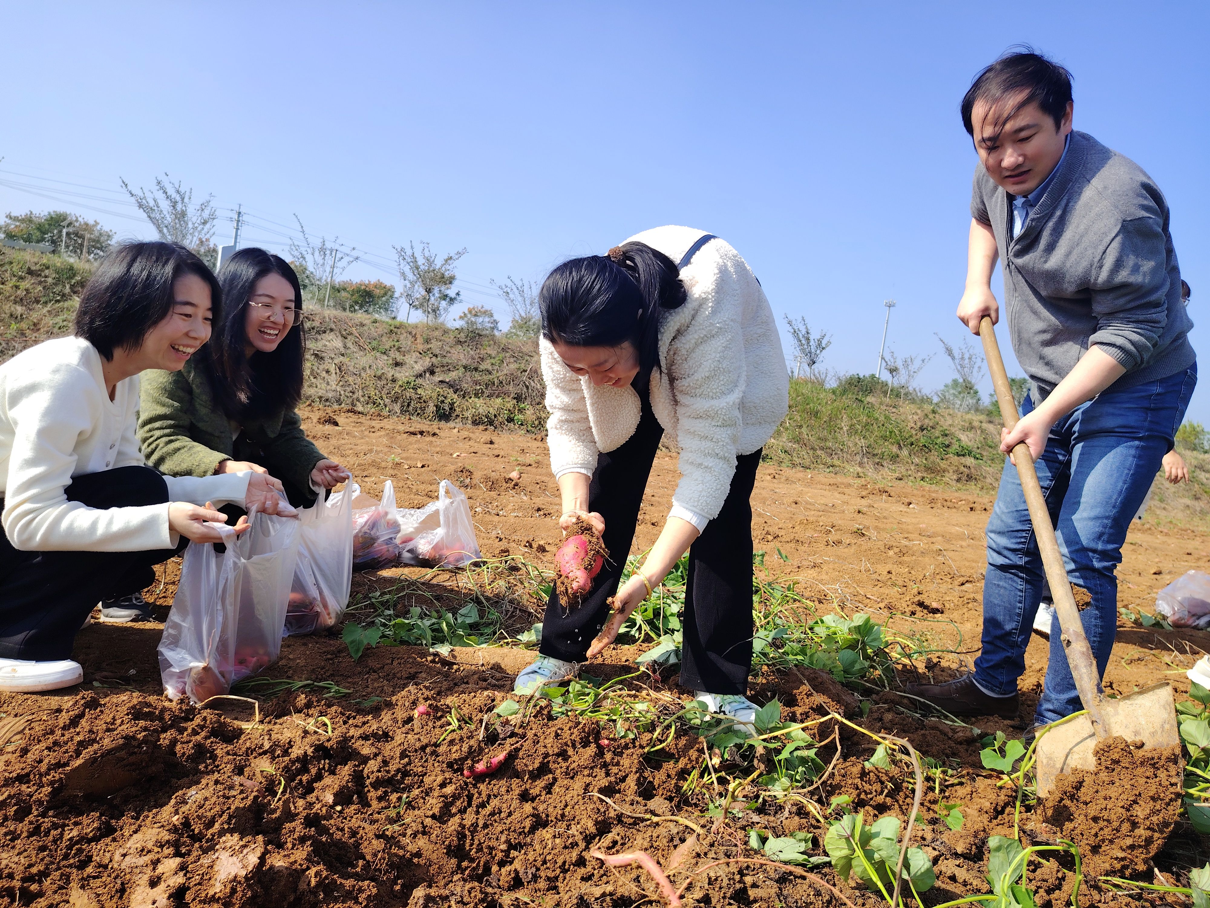 教职工首先参观了位于位于南京市六合区的竹镇市抗日民主政府纪念馆,了解抗战历史、重温革命精神。接着来到了农场,开展了秋日农耕,“薯”你最棒挖红薯活动,老师们两人一个小组,一人挥锹,一人分拣,热火朝天,体验了劳动的辛苦与收获的喜悦。最后,通过“筑梦新征程”答题活动和“南泥湾大丰收”趣味活动,系统回顾了建党百年的历史,锻炼了团队的沟通协调和合作探索的能力。