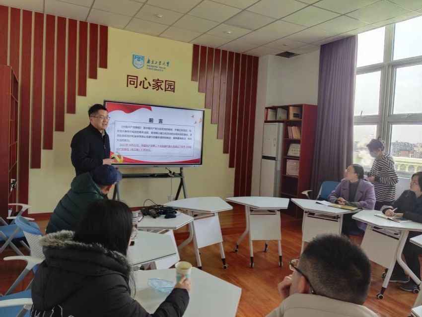党支部书记王玉斌为支部成员讲授《学习贯彻<中国共产党章程>》党课。王老师组织大家共同学习党的二十大审议通过的《中国共产党章程(修正案)》,重点解读党章修改要点。他强调,党章是党的根本大法,是全体党员言行的总规矩和总遵循,此次修改集中体现了党的十九大以来理论创新、实践创新和制度创新的成果。支部党员要深入学习贯彻党的二十大精神,认真学习党章,严格遵守党章,自觉加强党性修养,切实把党章各项规定要求落实到行动上、体现在工作中。