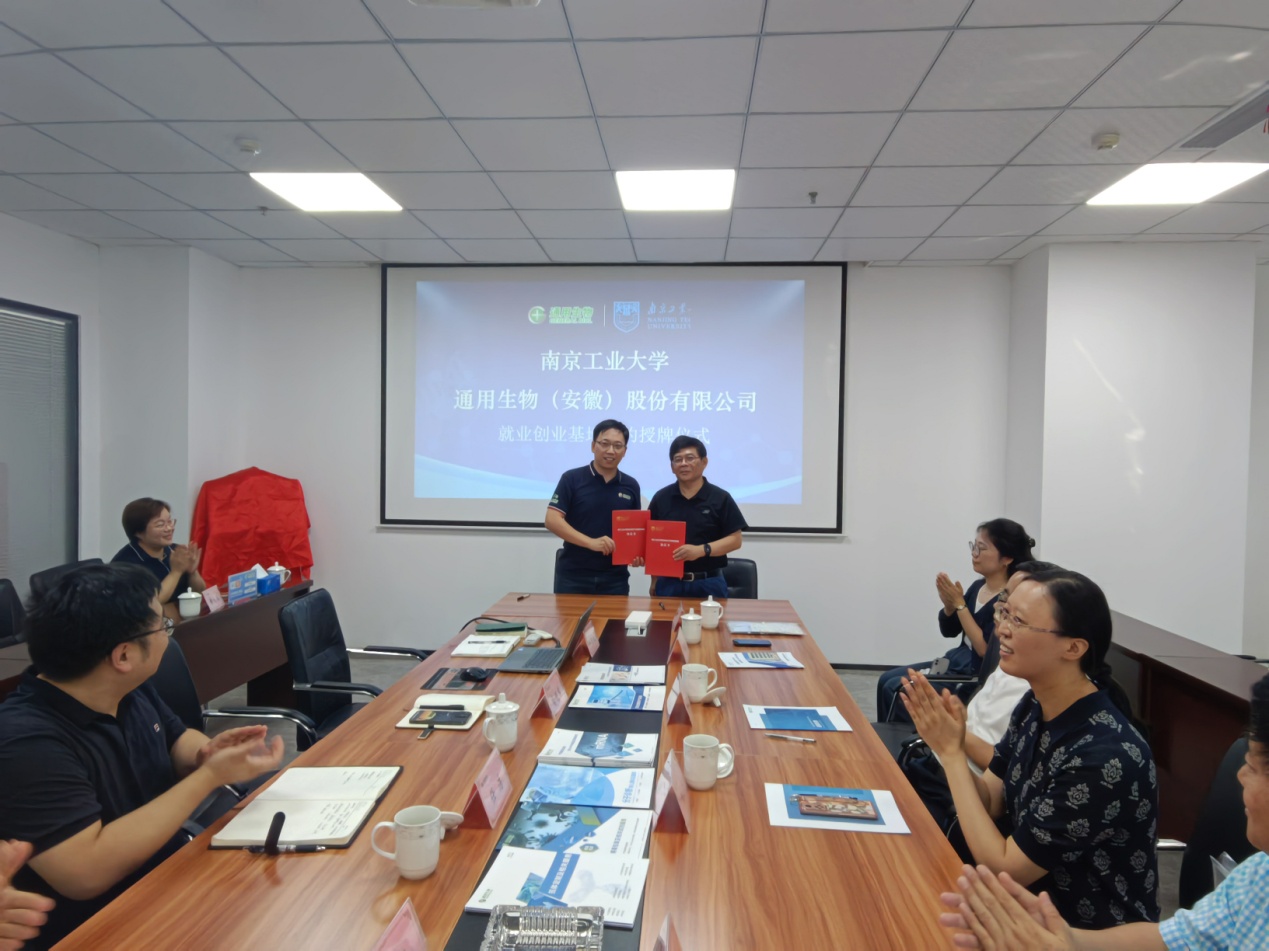 集团一行考察调研了通用生物(安徽)股份有限公司,参观了全国药品法治教育基地。suncitygroup太阳集团副经理卢定强与通用生物副总经理、生产总监喻明军签署suncitygroup太阳集团就业创业实习实践基地建设协议。张健与喻明军共同为基地揭牌。